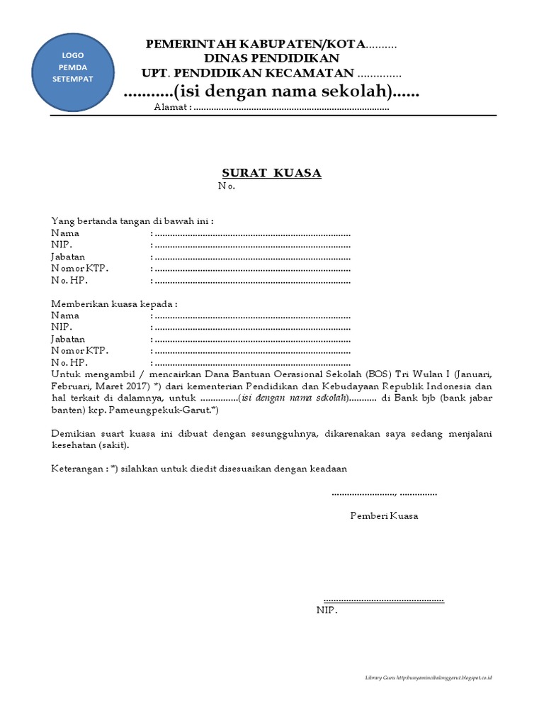 4. Pastikan surat kuasa tersebut ditandatangani dan dicap oleh orang tua atau wali sah